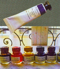 Les couleurs testées tiennent bien la route, je ne ferai qu’un reproche : l’absence d’une gamme complète. Le bleu de pastel véritable est vraiment magnifique. La couleur laque de noyer se rapproche d’une couleur terre d’ombre brûlée. Le noir de campêche est également original. Je mettrais un bémol sur le jaune de mûrier, trop clair à mon goût, car je préfère peindre avec des jaunes intenses. Le rouge de cochenille éclatant est aussi une belle surprise.