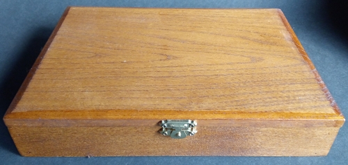 Coffret en bois 20 pastels secs. Beau, solide avec ses ferrures en laiton doré. (24 cm x 18 cm x 4,7 cm)