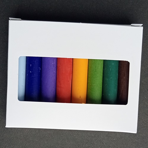 Les pastels à la cire sont peu salissants et leur dimension favorise une bonne tenue en main. dimension d’un pastel à la cire : diamètre 11 mm, longueur 70 mm. Ils sont disponibles en étuis de 8 bâtons.