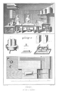 Ces recettes de cire à cacheter sont tirées de l’encyclopédie de DIDEROT (pages 3 :473 et 3 :474).